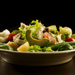 Chicken, avocado and basil salad with yoghurt and garlic dressing